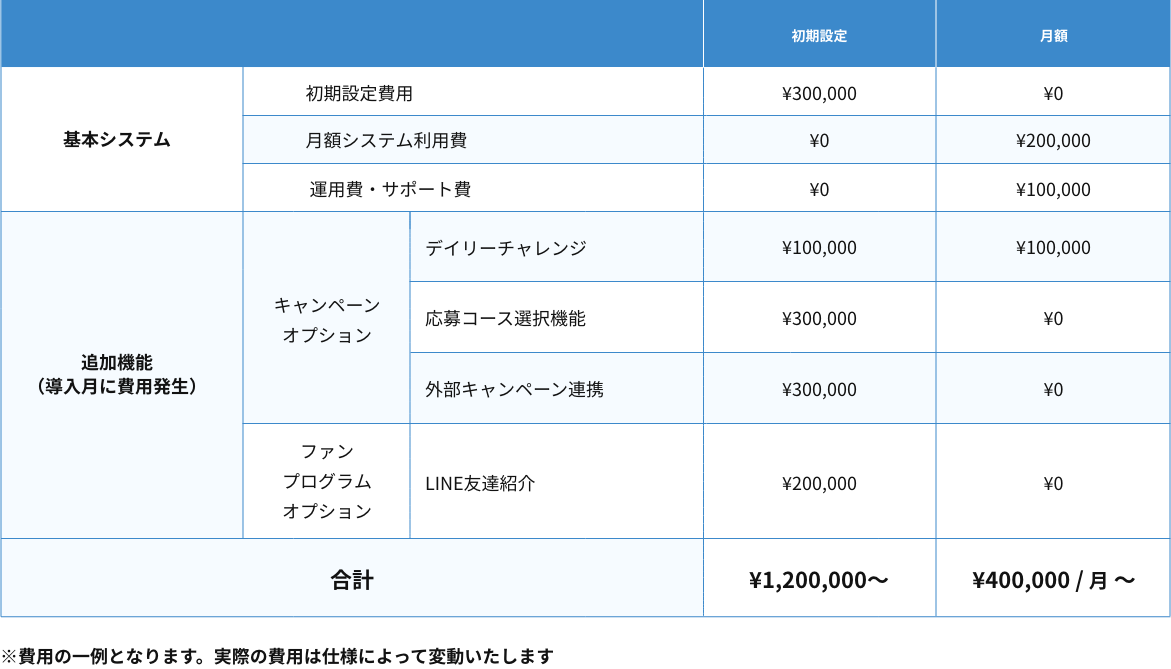 ※費用の一例となります。実際の費用は仕様により変動いたします。