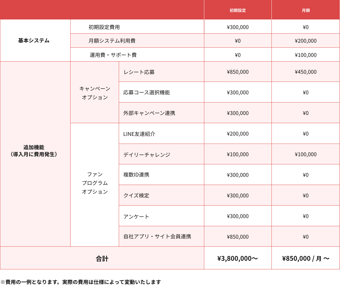 | 基本システム | 初期設定費用 | ¥300,000 | ¥0 | |