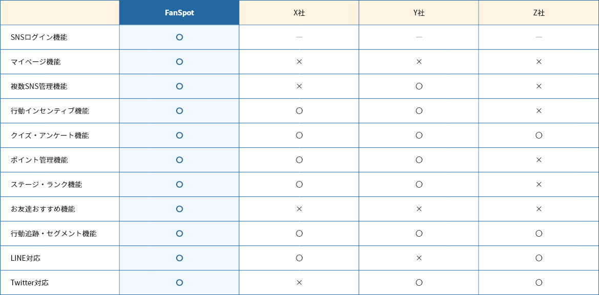 | FanSpot | X社 | Y社 | Z社 | |